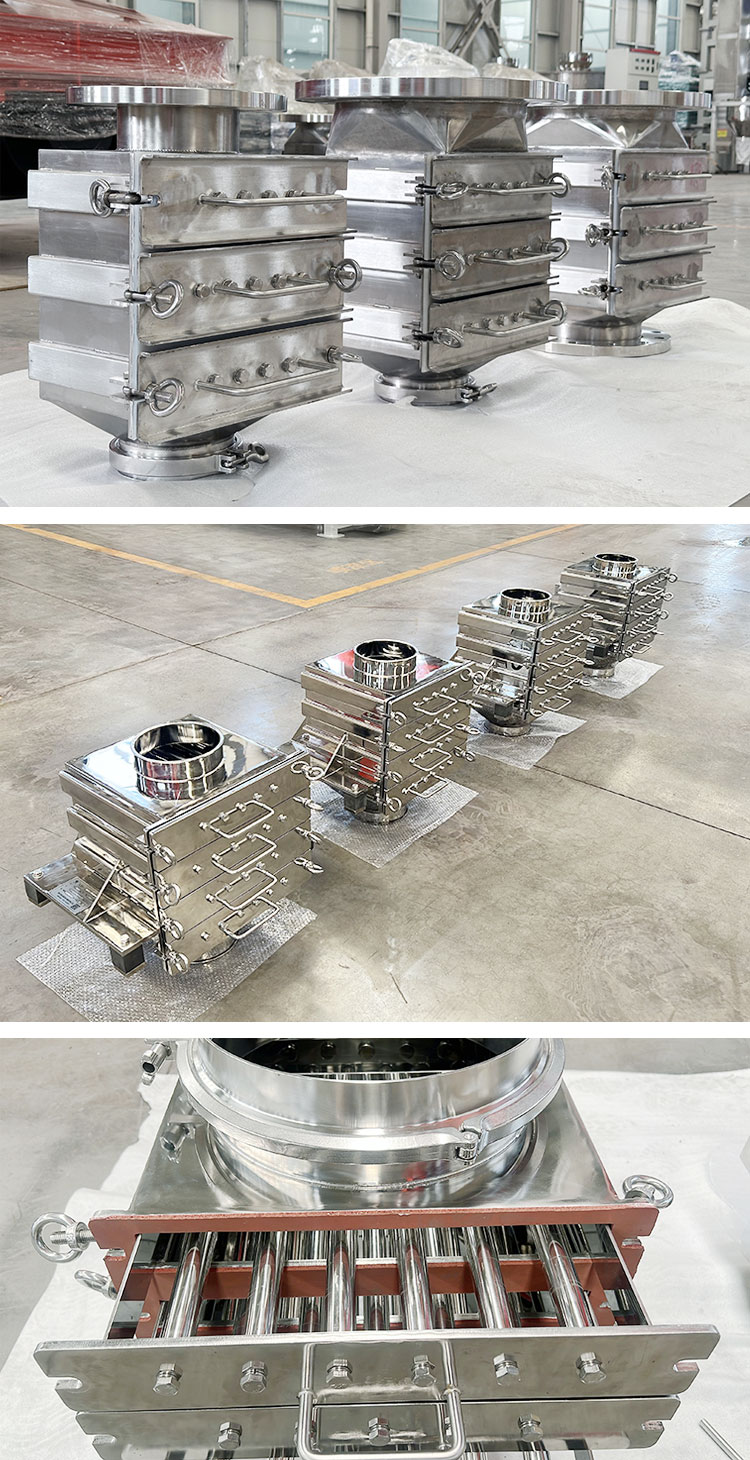 ◇CBS型抽屉式磁性过滤器主要用于如食品、制药、化学、石英砂、陶瓷等高敏感应用。其强力耐磨的机壳由防锈不锈钢制成。所有表面和焊接头都无缝合线而且高度镜面磨光。其强力的磁性甚至可以清除流动、干燥的、流动性好、粉状的、细小颗粒(颗粒直径<6mm),薄片状物料中的铁磁性物质。